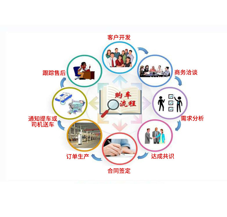 | 2、購車流程: | 1、咨詢洽談(電話洽談或來廠考察洽談) 2、簽訂汽車購銷合同(傳真、郵遞或者來廠簽訂) 3、我廠按時按質(zhì)生產(chǎn) 4、交付驗(yàn)收 >>點(diǎn)擊查看詳細(xì)內(nèi)容 |