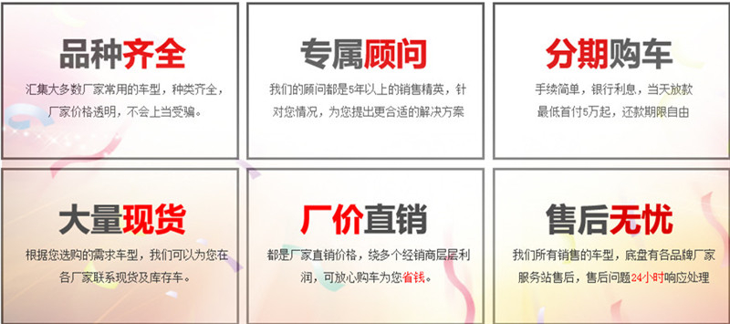 本廠常年儲(chǔ)備各類現(xiàn)車,預(yù)付定金即可發(fā)車,車到付全款,無憂售后,全國(guó)送車!