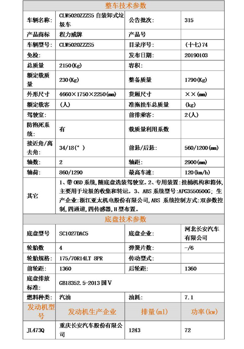 | 長安 3方掛桶垃圾車 售后服務(wù)說明 | |