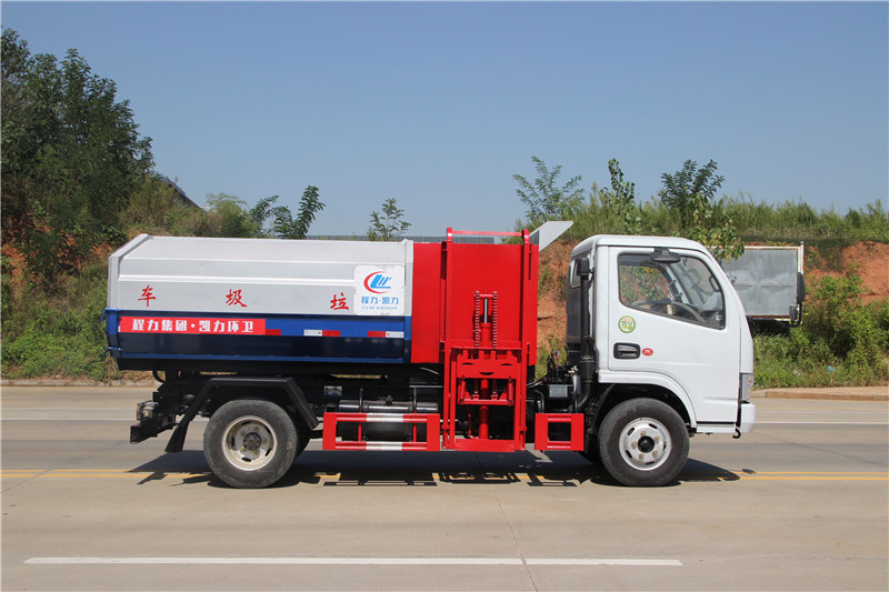 掛桶垃圾車(chē) 又名自裝卸式垃圾車(chē), 由密封式垃圾廂、液壓系統(tǒng)、操作系統(tǒng)組成。舉升油制缸垃圾廂可自吊上放下,上下一次工作循環(huán)時(shí)間≤50秒。一輛車(chē)可配幾十個(gè)垃圾桶,實(shí)現(xiàn)一臺(tái)車(chē)與多個(gè)垃圾桶聯(lián)合作業(yè),循環(huán)運(yùn)輸,充分提高了車(chē)輛的運(yùn)輸能力,特別適用于短途運(yùn)輸,如環(huán)衛(wèi)部門(mén)對(duì)城鎮(zhèn)垃圾的清理、運(yùn)輸?shù)取?/span>