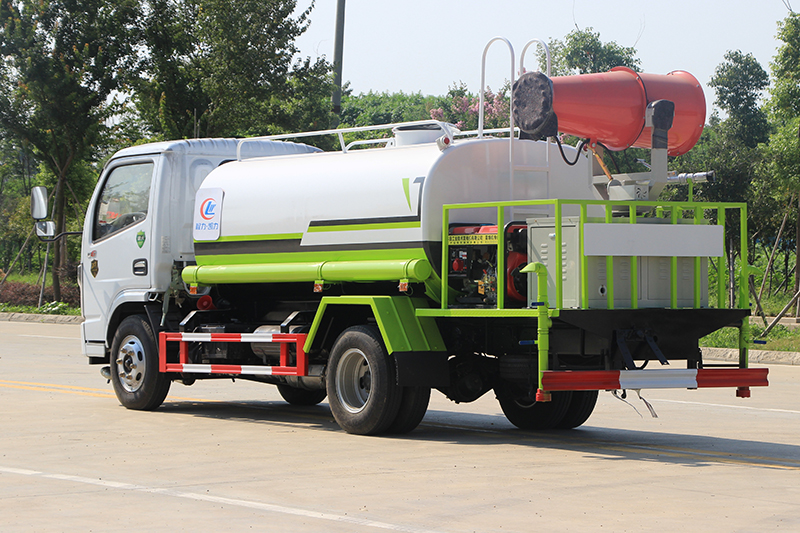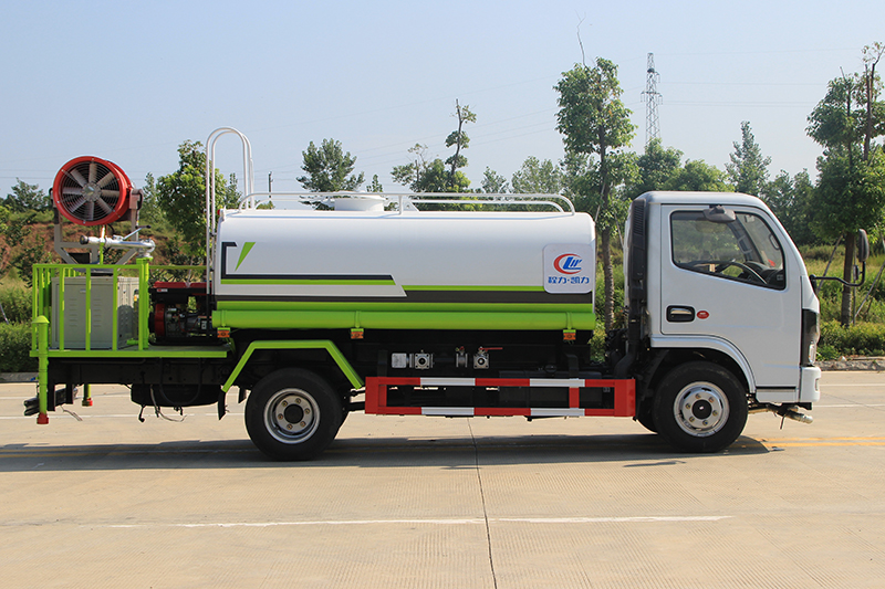 噴霧降塵車,抑塵效果約為普通灑水車的30倍,一臺噴霧降塵車的工作直徑可覆蓋4個標準足球場。水箱中的水經(jīng)過霧化后,由高壓風(fēng)機噴出,水霧顆粒極為細小,達到了微米級,其吸附力也增加了3倍,耗水量卻降低了70%,遭遇霧霾天氣、空氣質(zhì)量PM2.5嚴重超標時,進行液霧降塵、可分解淡化空氣中的顆粒濃度、將飄浮在空氣中的污染顆粒物、塵埃等迅速逼降地面,達到清潔凈化空氣的效果。
