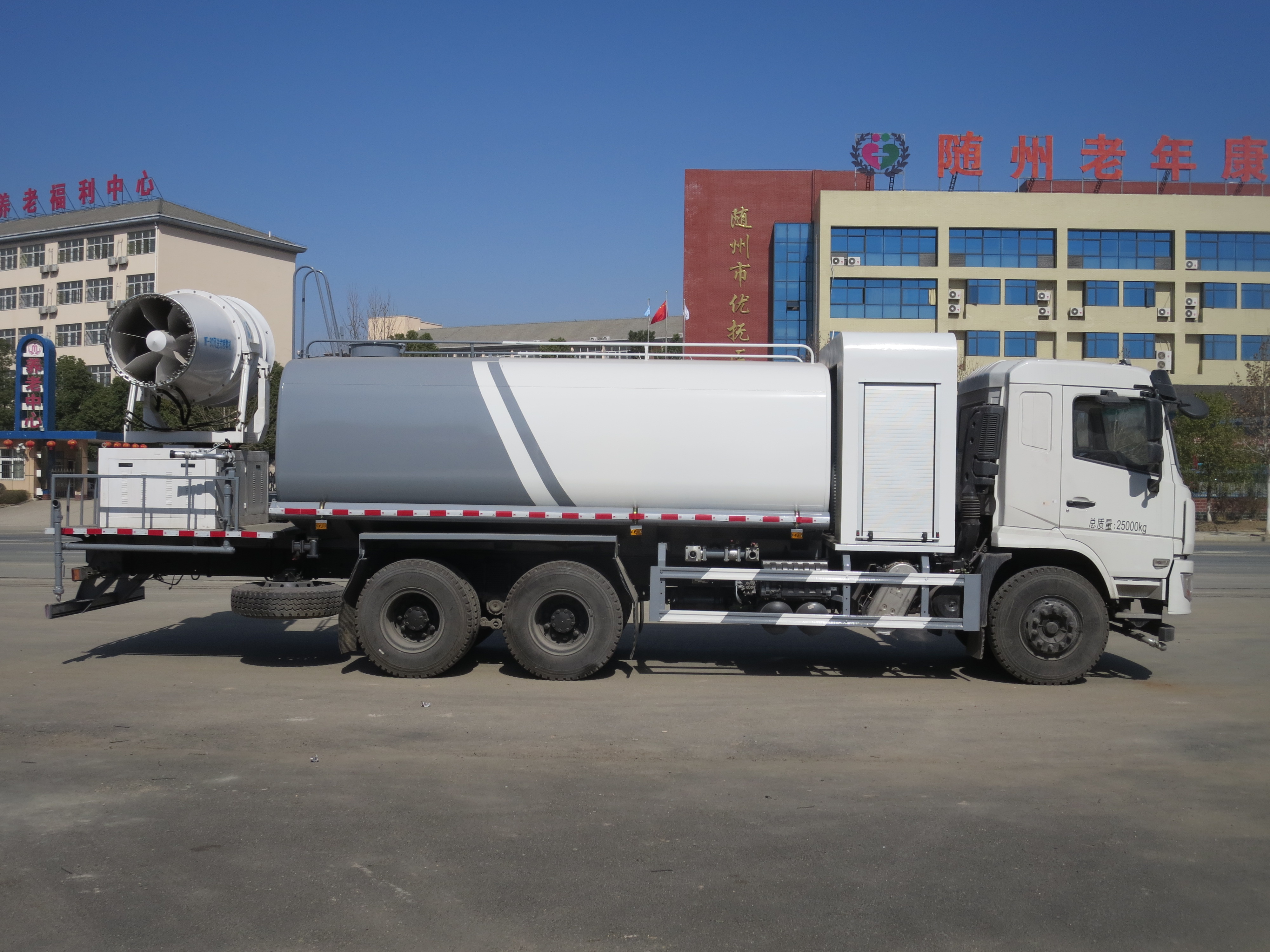 多功能抑塵車,城市、工地、廠區(qū)降塵利器,工作效率約為普通灑水車的30倍,工作直徑可覆蓋4個(gè)標(biāo)準(zhǔn)足球場(chǎng)。水箱中的水經(jīng)過(guò)霧化后,由高壓風(fēng)機(jī)噴出水霧顆粒極為細(xì)小,達(dá)到了微米級(jí),其吸附力也增加了3倍,耗水量卻降低了70%,遭遇霧霾天氣、PM2.5嚴(yán)重超標(biāo)時(shí),進(jìn)行液霧降塵、可將飄浮在空氣中的污染顆粒物、塵埃等迅速逼降地面,達(dá)到清潔凈化空氣的效果。