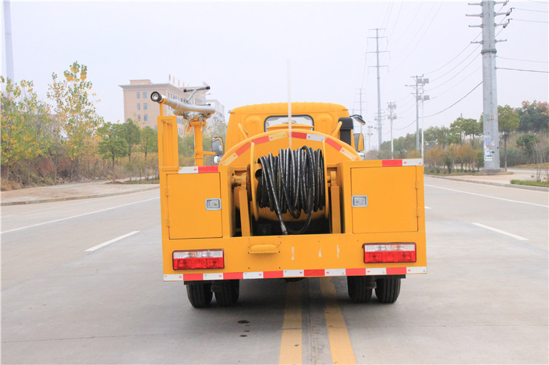 高壓清洗車也稱管道疏通車,通過高壓水流產(chǎn)生的強大壓力沖開被堵塞的管道。主要組成部分為罐體、高壓泵、液壓系統(tǒng)等。高壓清洗車主要用于清洗城市下水道、管道的沉積物、死角泥溝的疏通,也可用于清洗工業(yè)排液管道、壁面等,清洗公路、廣場地面。
