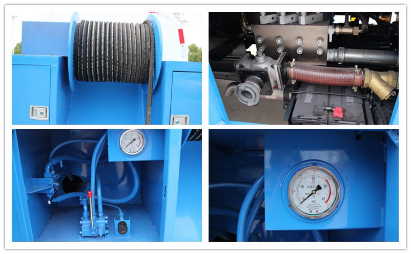 此車還可加裝灑水裝置,安裝綠化灑水炮、前沖、后灑、側(cè)噴,可進行綠化灑水、噴霧、壓塵、高壓沖洗路面等,緊急時可用于救火。
