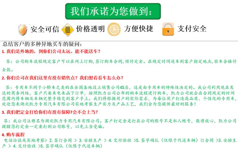 | 2、購車流程: | 1、咨詢洽談(電話洽談或來廠考察洽談) 2、簽訂汽車購銷合同(傳真、郵遞或者來廠簽訂) 3、我廠按時按質(zhì)生產(chǎn) 4、交付驗收 >>點擊查看詳細內(nèi)容 |