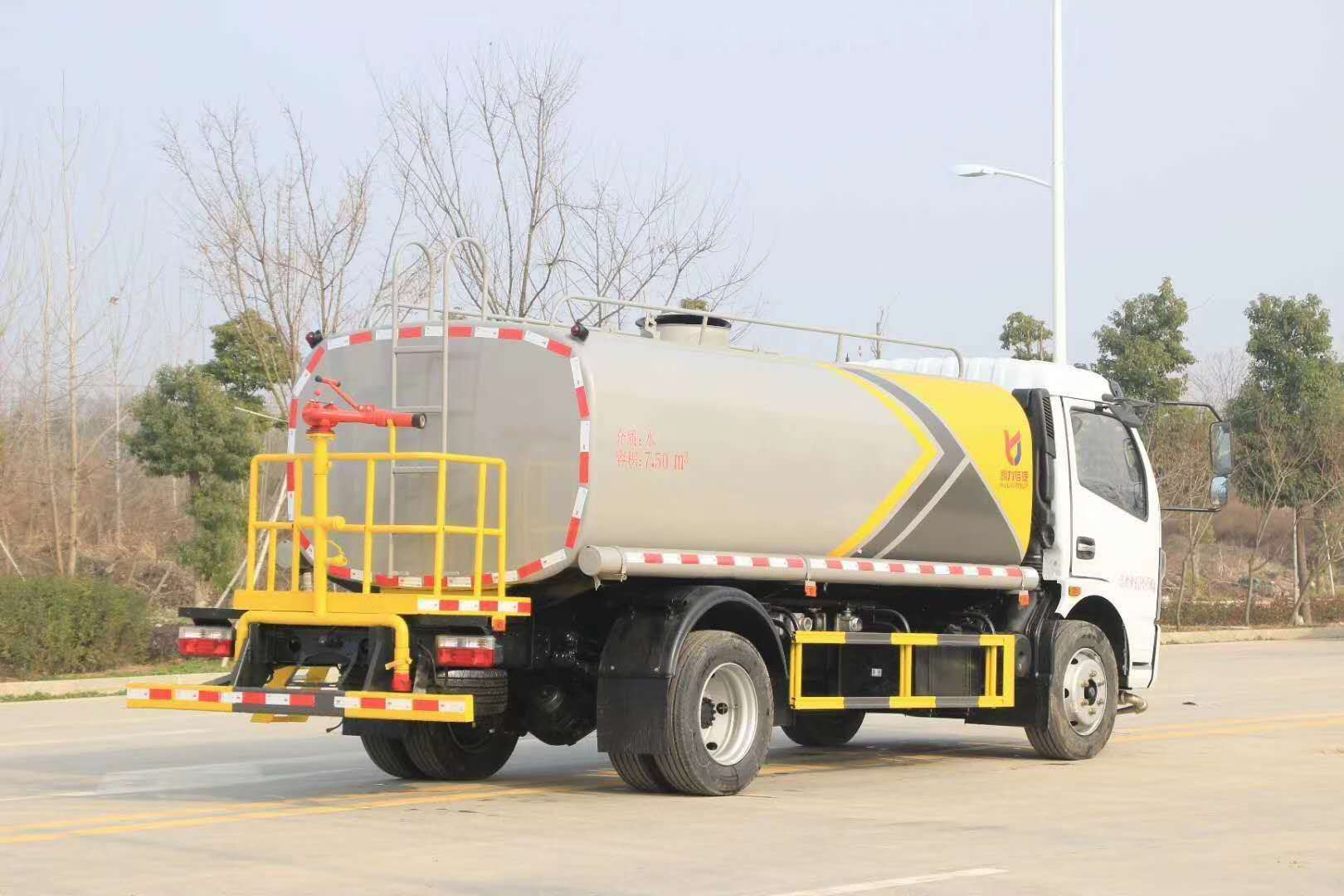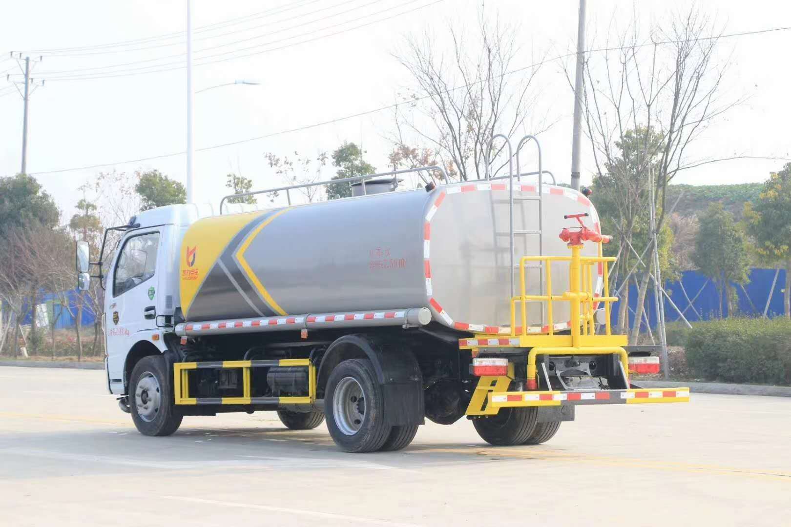 前噴后灑,前裝有鴨形噴嘴或圓頭沖嘴,后面裝有圓柱開灑水噴嘴或蓮蓬頭噴嘴,后部有一工作平臺(tái),裝配有高壓水炮。后部還可裝8個(gè)噴嘴(選裝)噴水器一般用于沖洗街道。